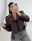 Campera Over eco cuero forrada con cinto . Cierres plata