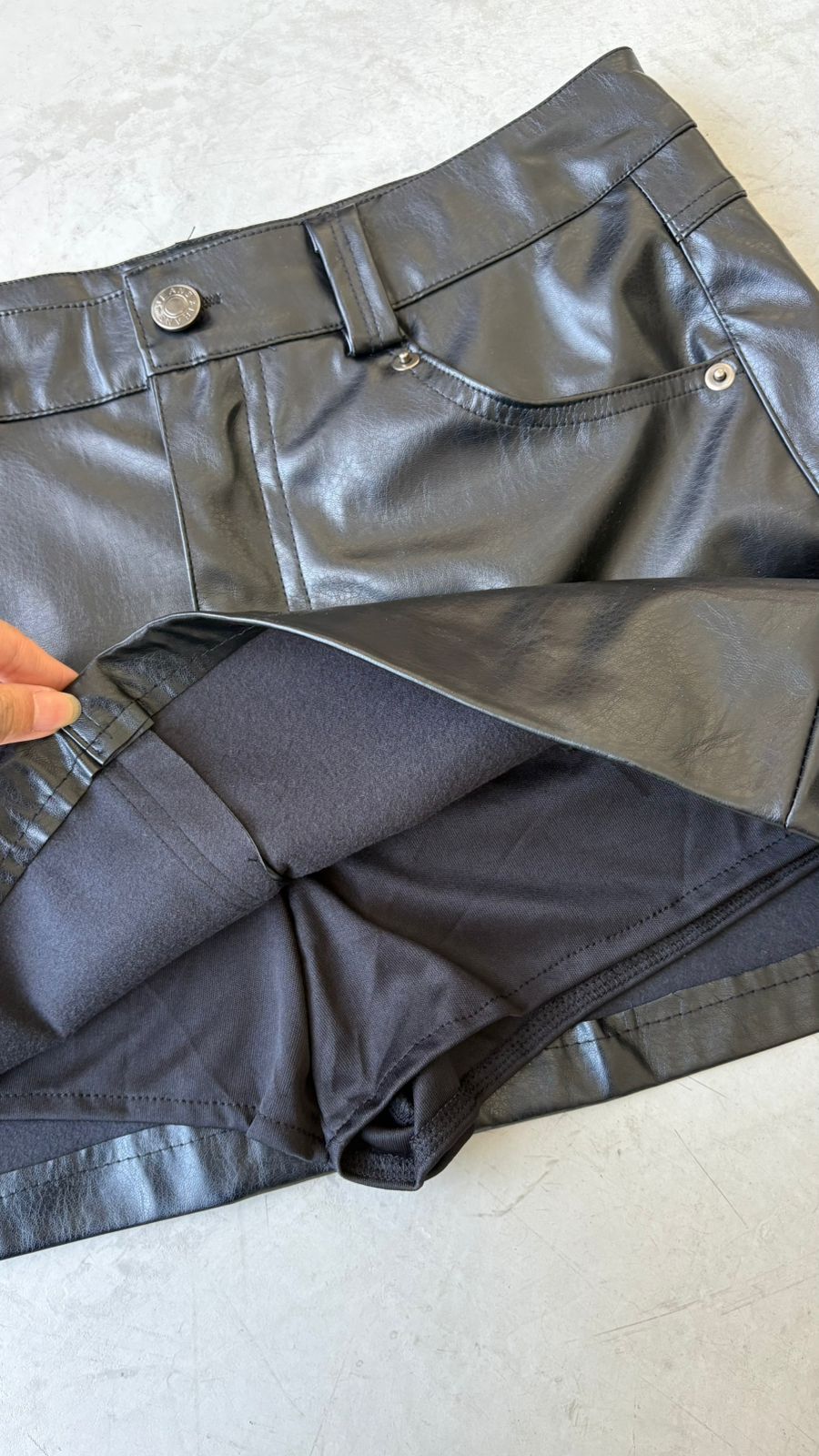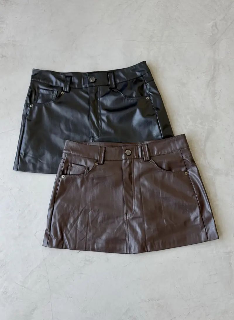 Pollera mini cono bolsillos y detalle de pasacintos. Tiene short interno de tela.