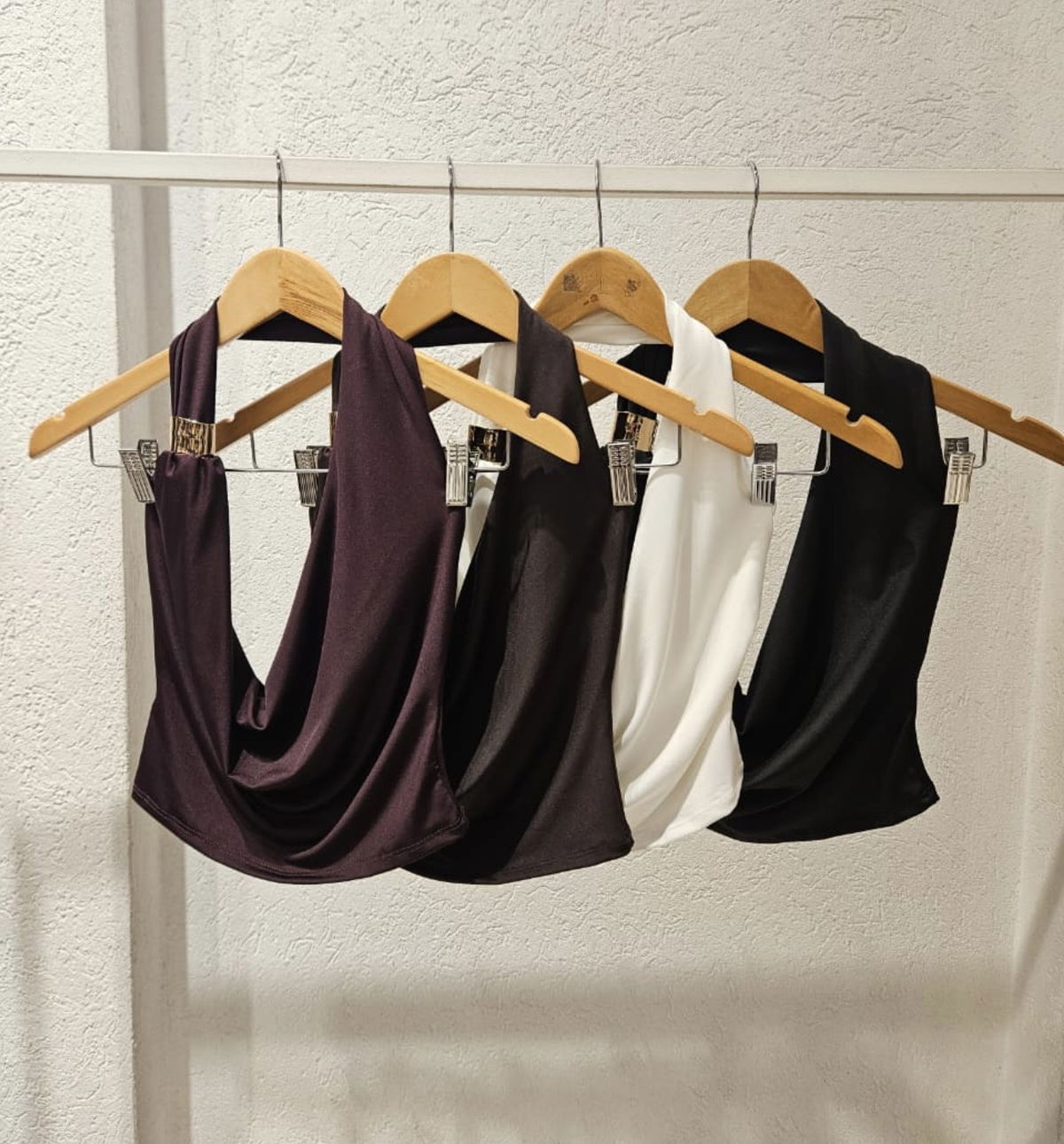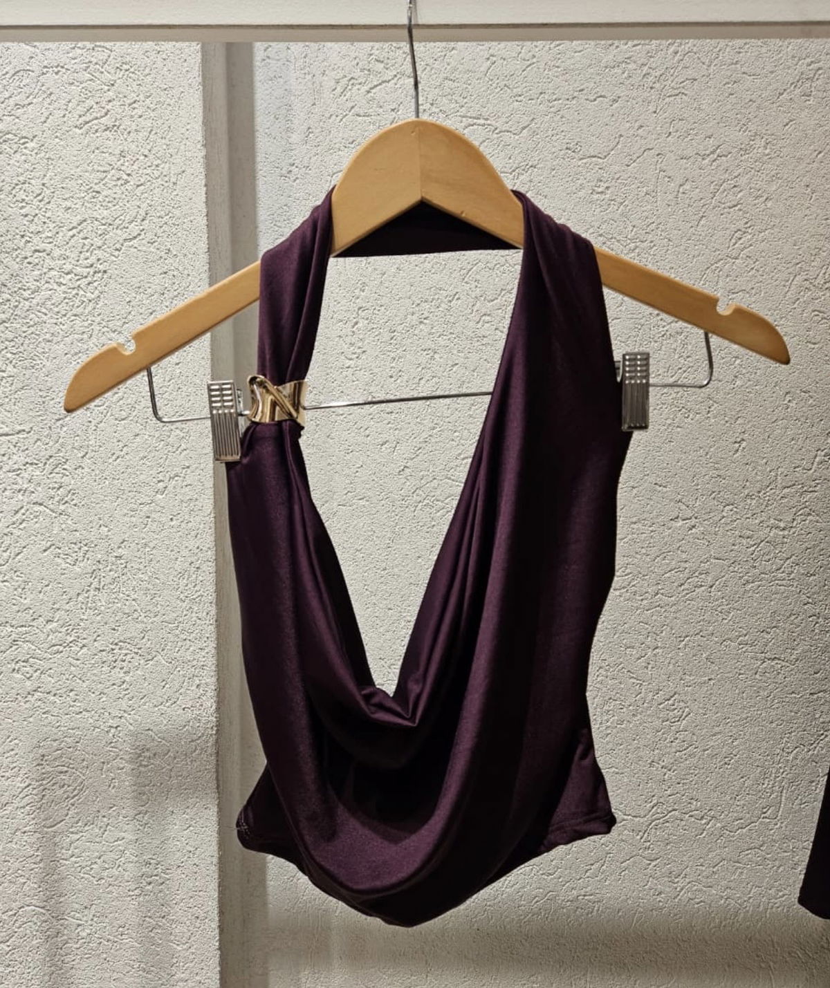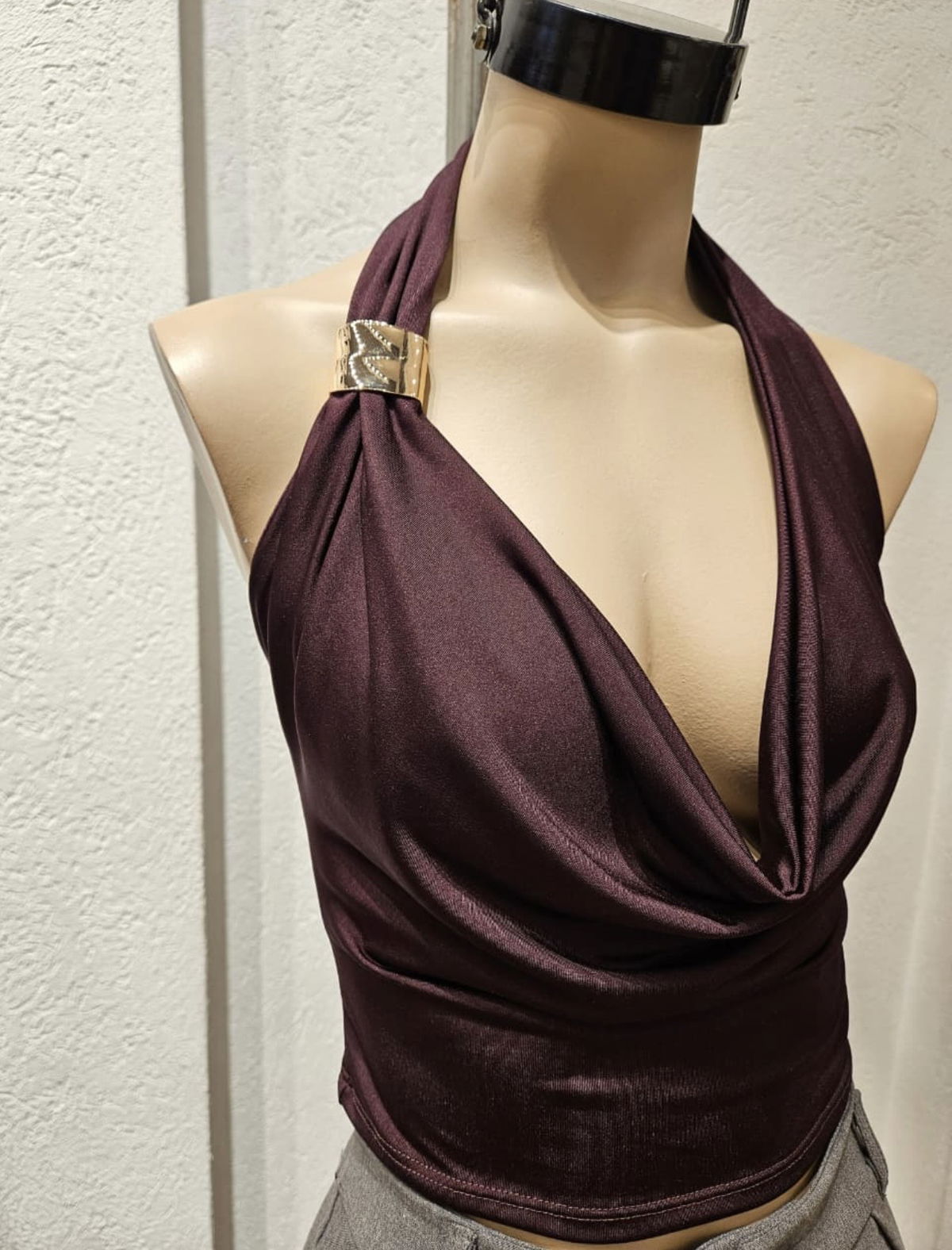 Top con buche y accesorio dorado al costadoTela: Microfibra. Talle único (cede hasta un talle L aprox)