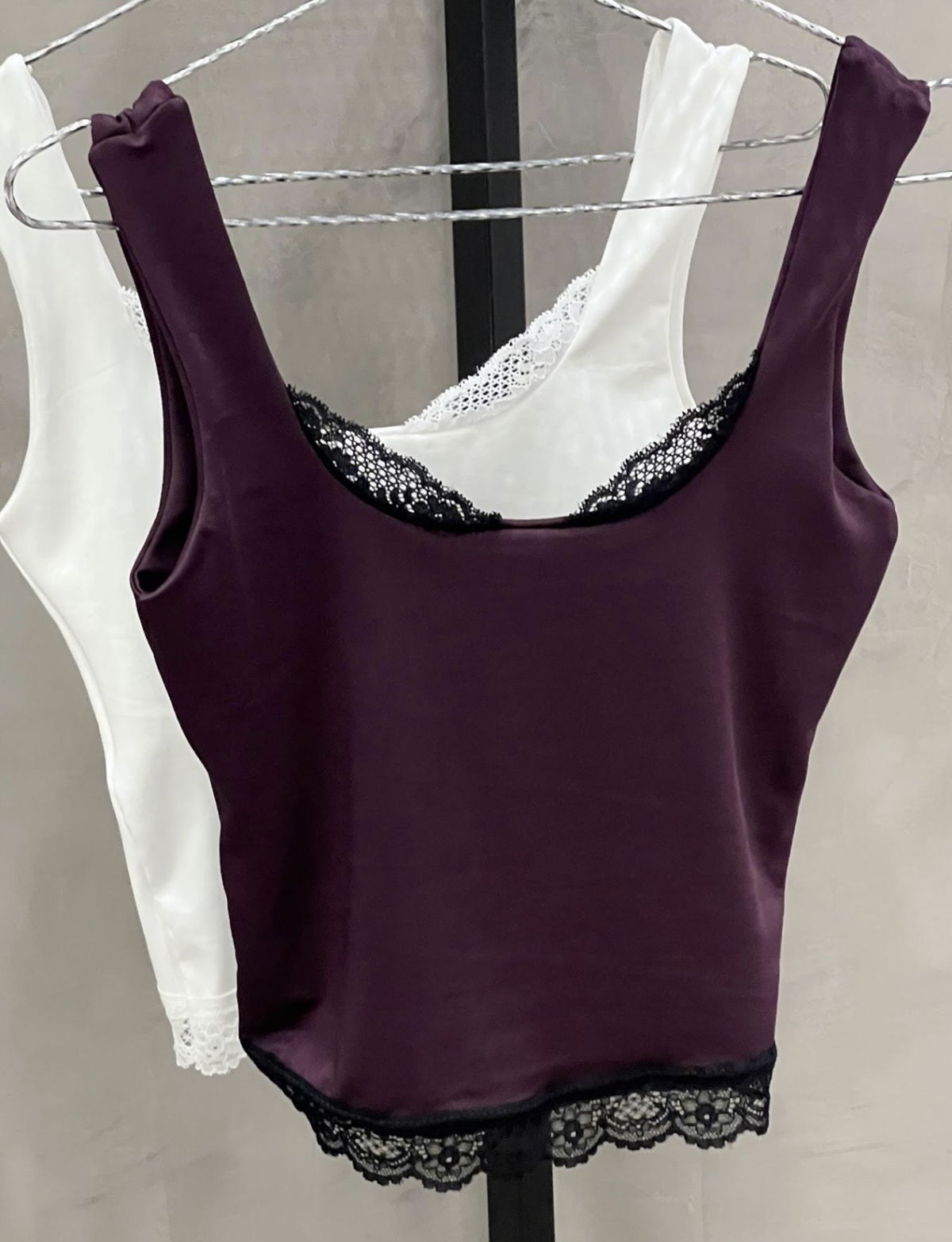 Top muscu largo escote U en el frente con detalle en puntilla y espalda semi descubierta. Microfibra. Talle único