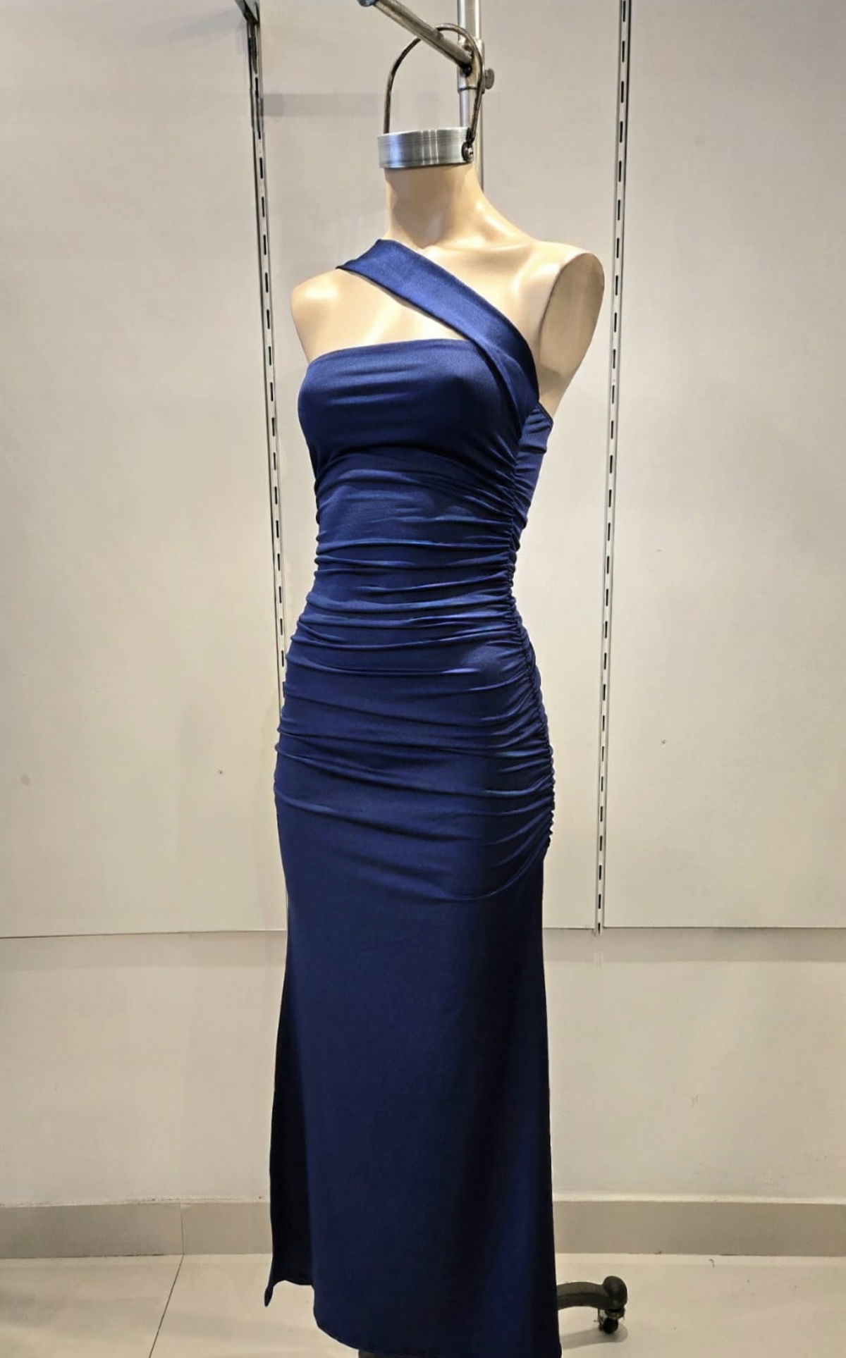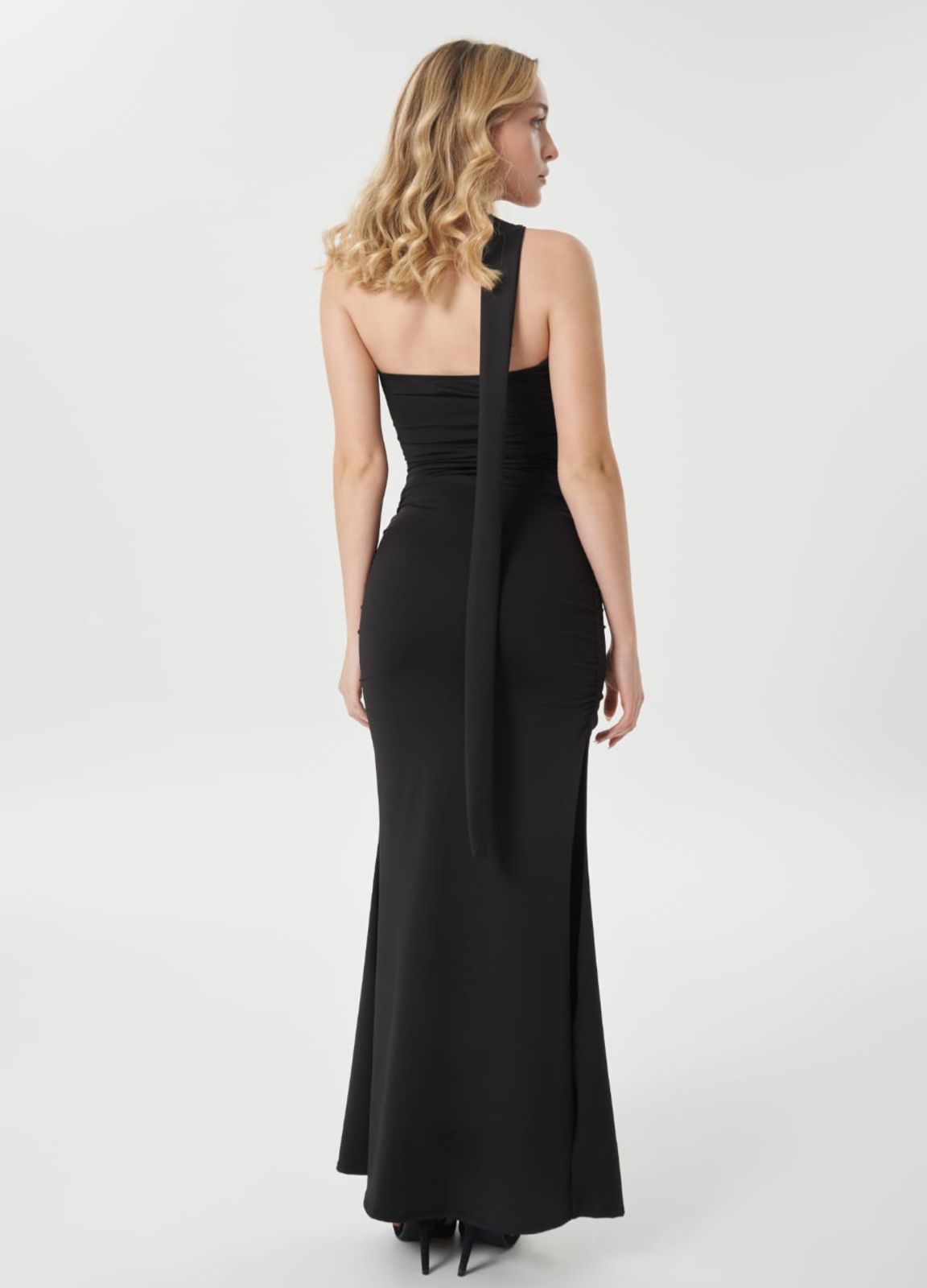 Vestido largo de microfibra c/lycra, escote strapless con tira ancha cruzada para usar como bufanda o apoyada en el hombro. Frunces elastizados laterales, Talle unico.